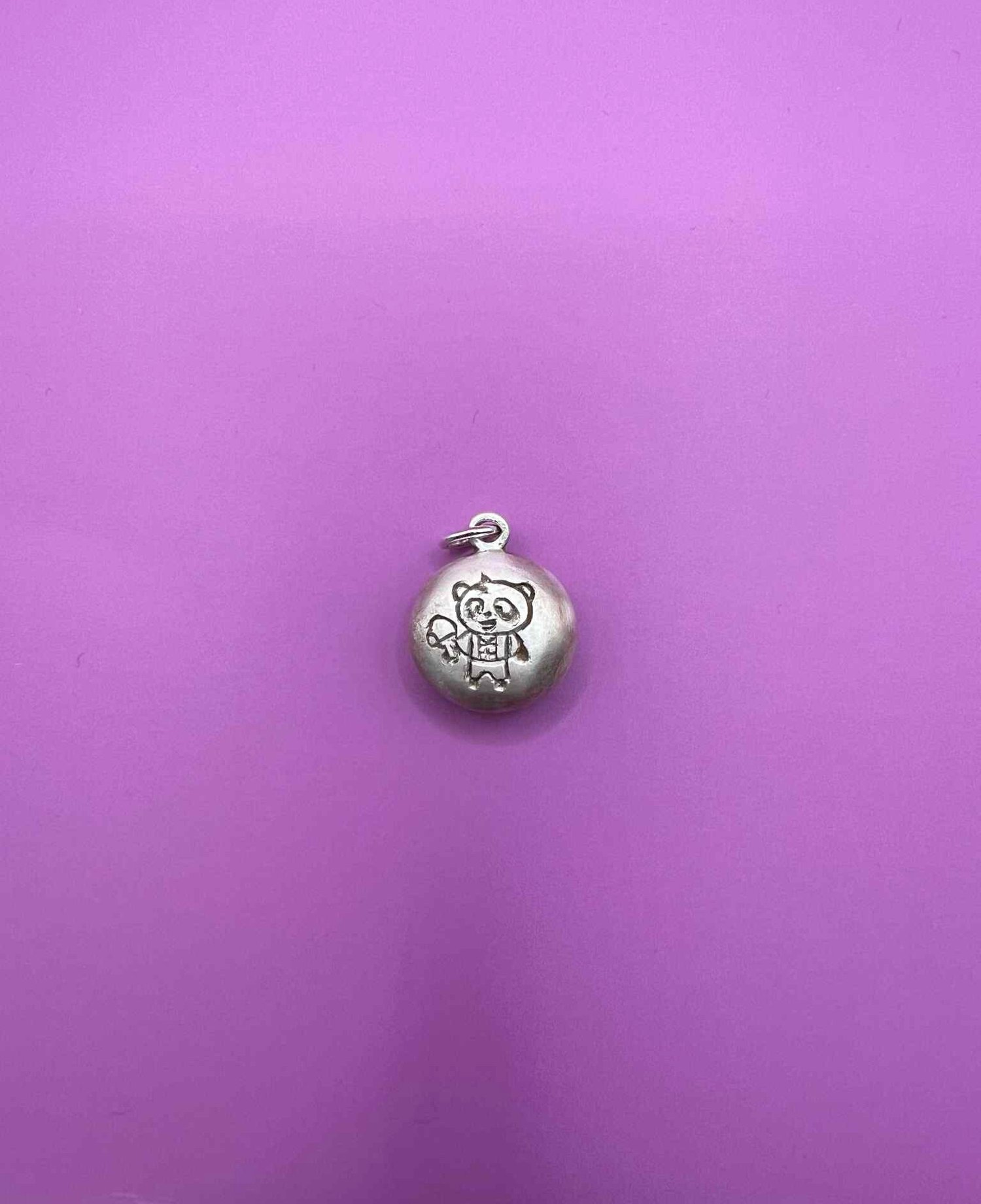 Based on the iconic kid's snack in Asian grocery stores everywhere. Unfortunately not filled with chocolate - made with solid silver instead (sorry), carefully carved with a panda print and has a light patina applied to look like a baked cookie.